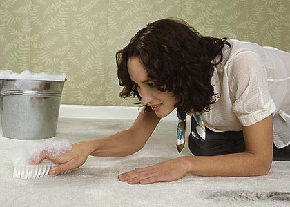 Avec lui, vous pouvez nettoyer très rapidement les revêtements de sol en moquette. Pour cela, un détergent spécial est fouetté avec une brosse et la surface est soigneusement nettoyée à l'aspirateur. Dans ce cas, une attention particulière est portée aux endroits fortement pollués. Ce sont généralement des portes et des zones de trafic intense. Ici, vous devez aller avec un aspirateur plusieurs fois et de préférence en croix.