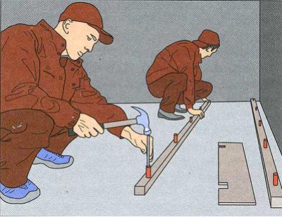 salut! Dans votre cas, la seule bonne option serait d'organiser un plancher en bois pour les retards. Mais ils doivent être une technologie spéciale - réglable.