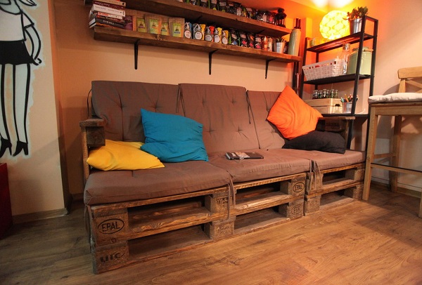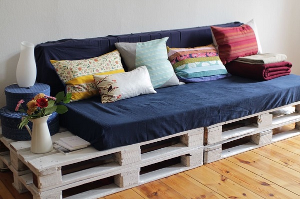 Les palettes se transforment facilement en canapés confortables. L'arbre peut être peint en inscrivant le produit fini dans la palette de couleurs globale de l'intérieur, ou simplement poncé et recouvert de teinture.
