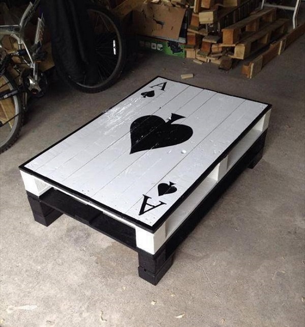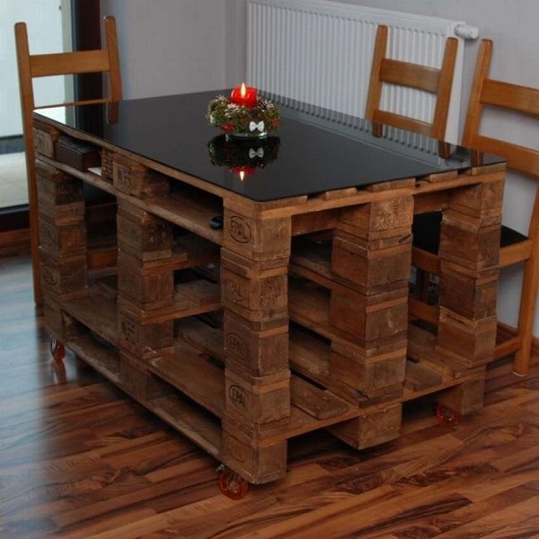 Les palettes, empilées les unes sur les autres et recouvertes de verre ou de planches, se transforment en une table, un repas ou un café pratique.