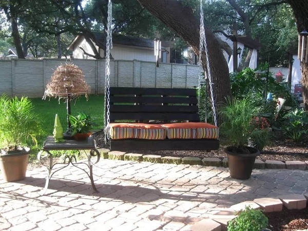 Faire une balançoire à partir de palettes, vous ne pouvez pas vous embêter avec le dos et les accoudoirs, il suffit de suspendre la palette sur des cordes solides. Un siège en forme de canapé suspendu vous permet de profiter de vos vacances avec plus de confort.