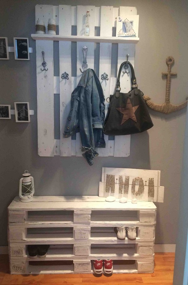 Les palettes sont utiles comme matériaux de construction pour un couloir ou un dressing. Ils peuvent être utilisés à la fois préalablement démontés sur les planches, ou dans leur ensemble.