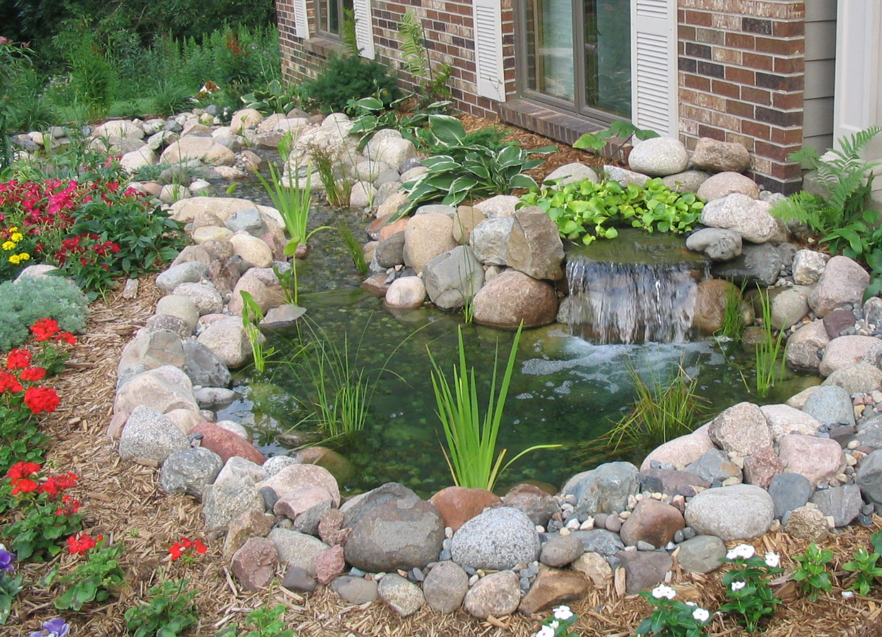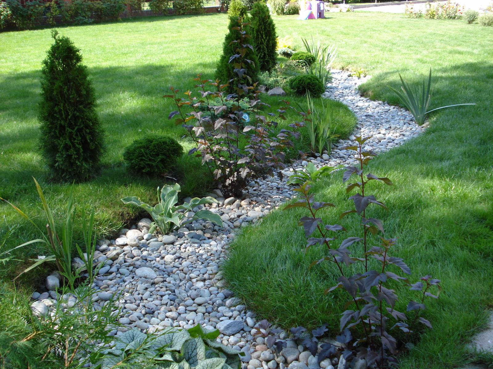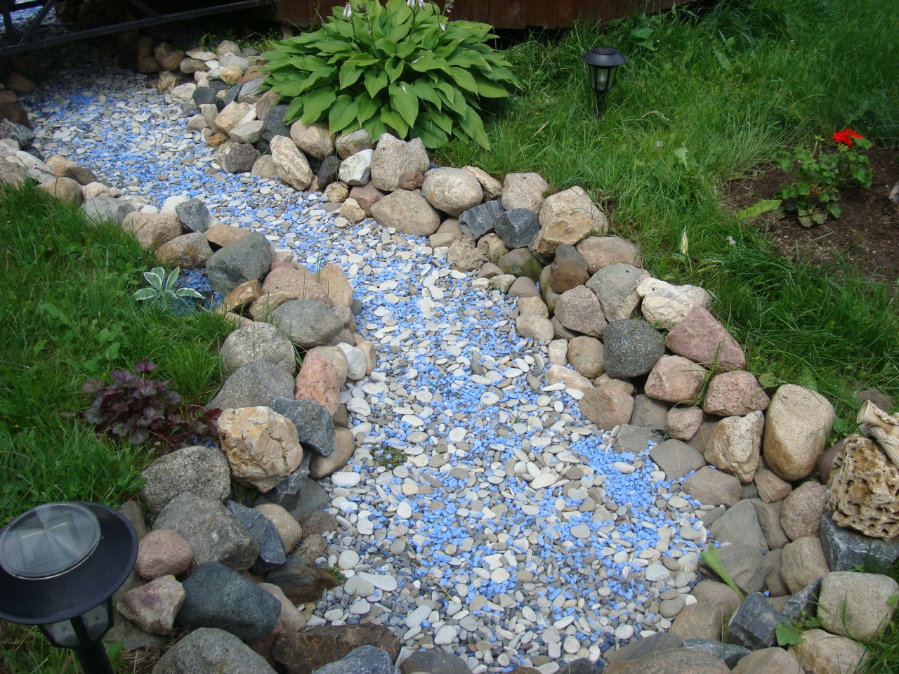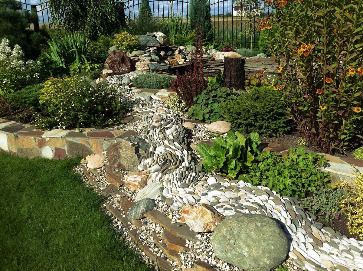 Un ruisseau sec coloré sera un ajout spectaculaire à une pelouse verte ennuyeuse.