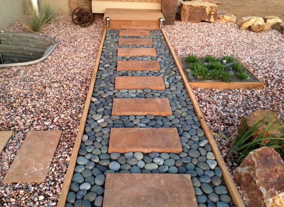 Les chemins de galets ou de pierres sont très durables et élégants. Le choix des matières premières et leurs options d'installation ne dépendent que de la compétence et de l'imagination de l'artiste.