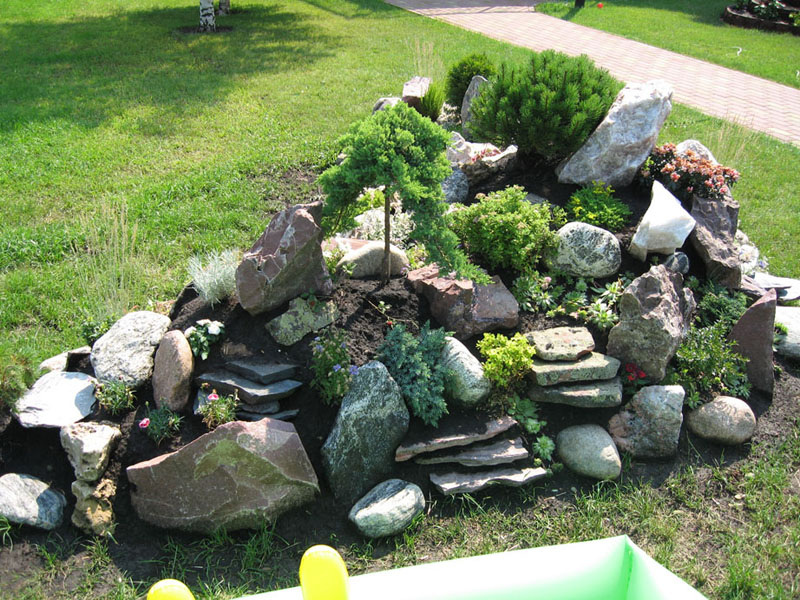 La façon la plus populaire d'utiliser des matériaux en pierre naturelle est de créer des toboggans alpins, des rocailles ou des bordures pour les parterres de fleurs.