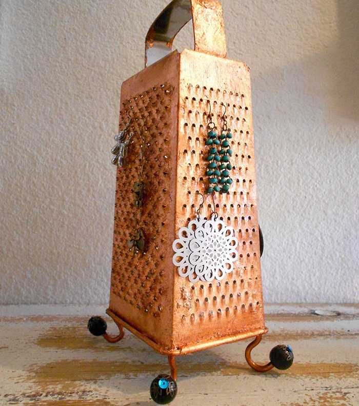 Les avantages des anciennes râpes incluent la forme pratique et les trous finis - les objets hauts peuvent être placés dans un organisateur de fortune, et les bijoux et les porte-clés peuvent être suspendus de manière pratique.
