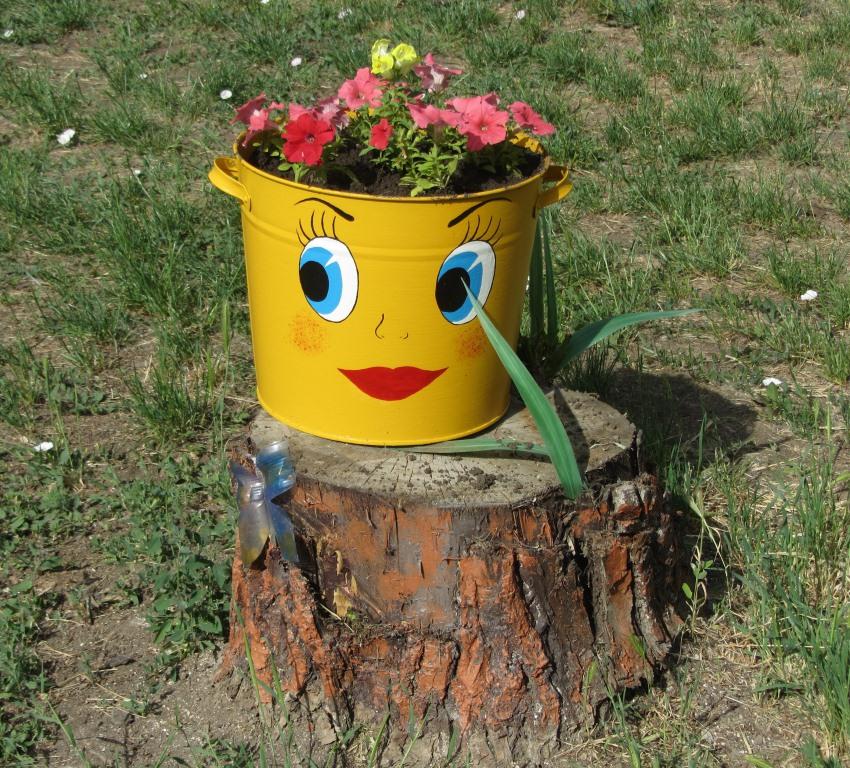 Le choix des éléments pour la conception d'un parterre de fleurs mobile ne dépend que de l'imagination des jardiniers. Une bordure lumineuse de couvercles de pot rendra la composition plus complète.
