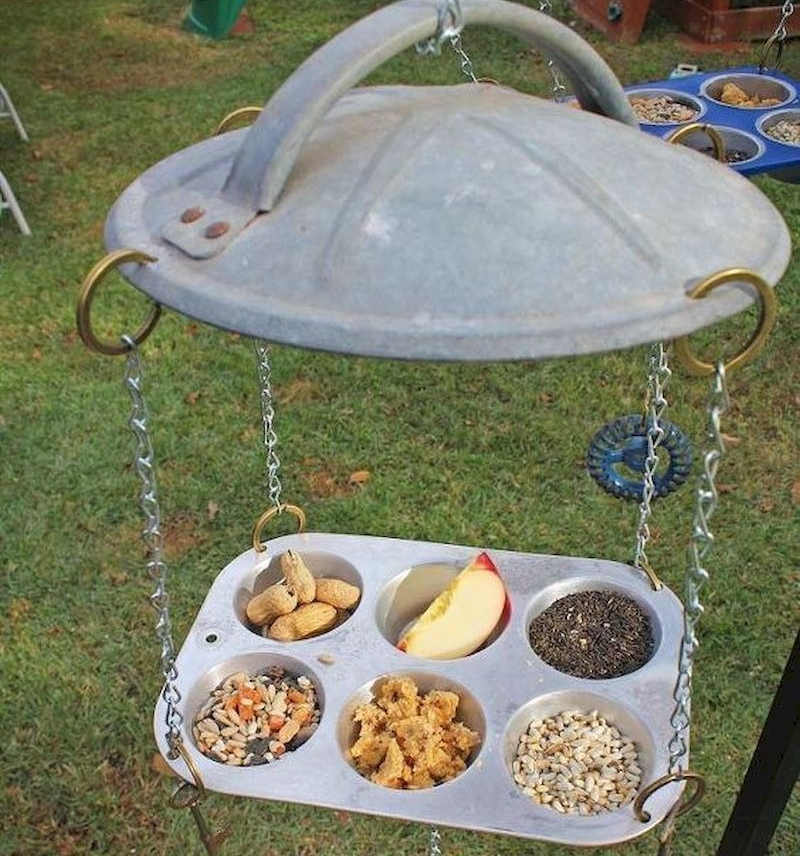 Une «salle à manger» pour oiseaux faite maison peut être utilisée simultanément par plusieurs petits nichoirs.