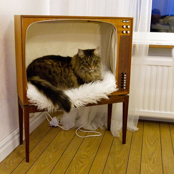 Les animaux adorent dormir dans des boîtes. Le boîtier de l'ancien téléviseur est le mieux adapté à cet effet.