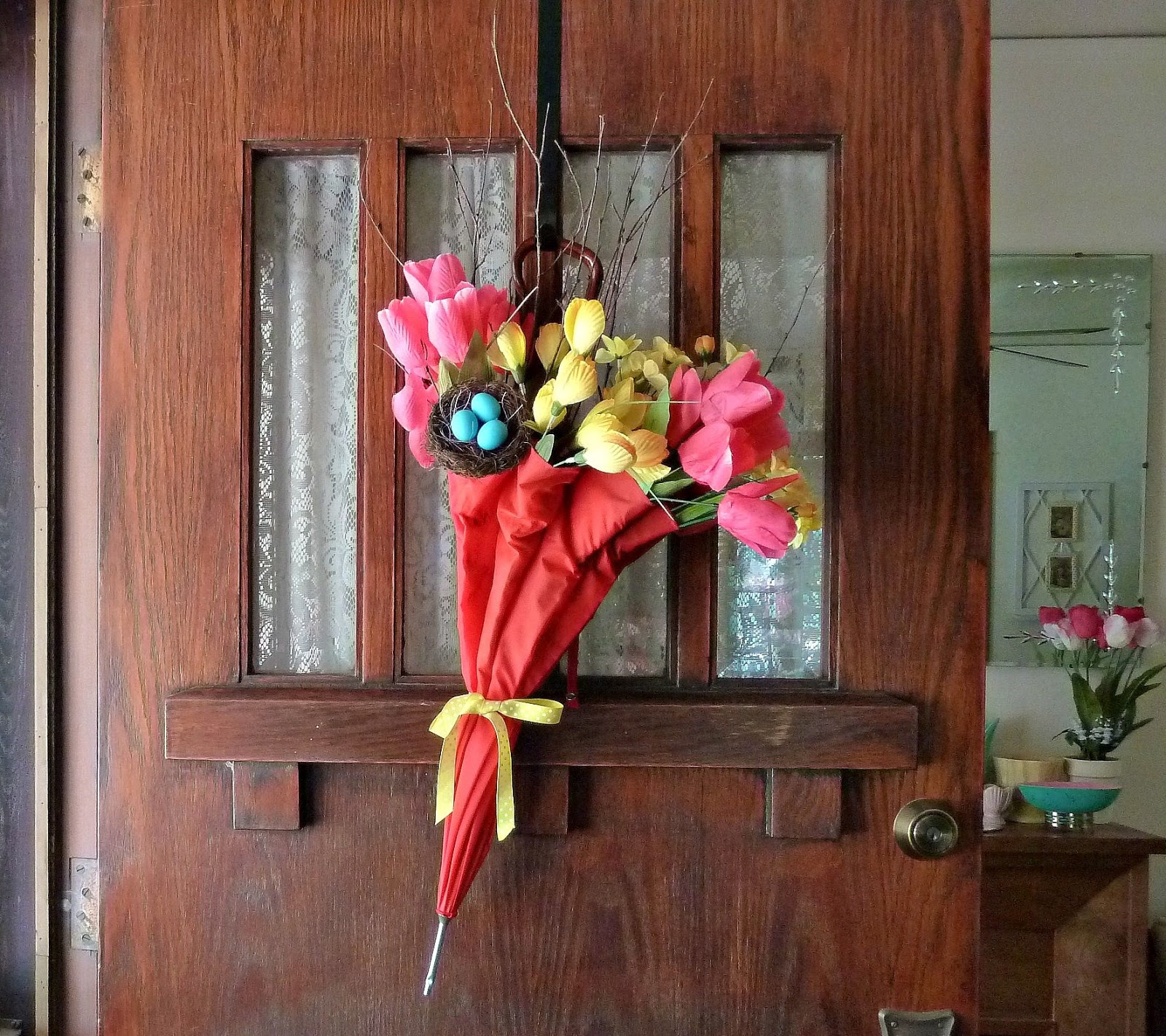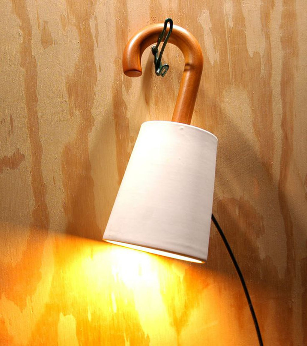 Il est possible d'utiliser pour les produits faits maison non seulement le parapluie entier, mais aussi ses parties individuelles. Si les anciennes poignées en bois sont renouvelées, vernies ou peintes, elles seront utiles pour créer, par exemple, une applique murale colorée et un cintre dans le couloir.