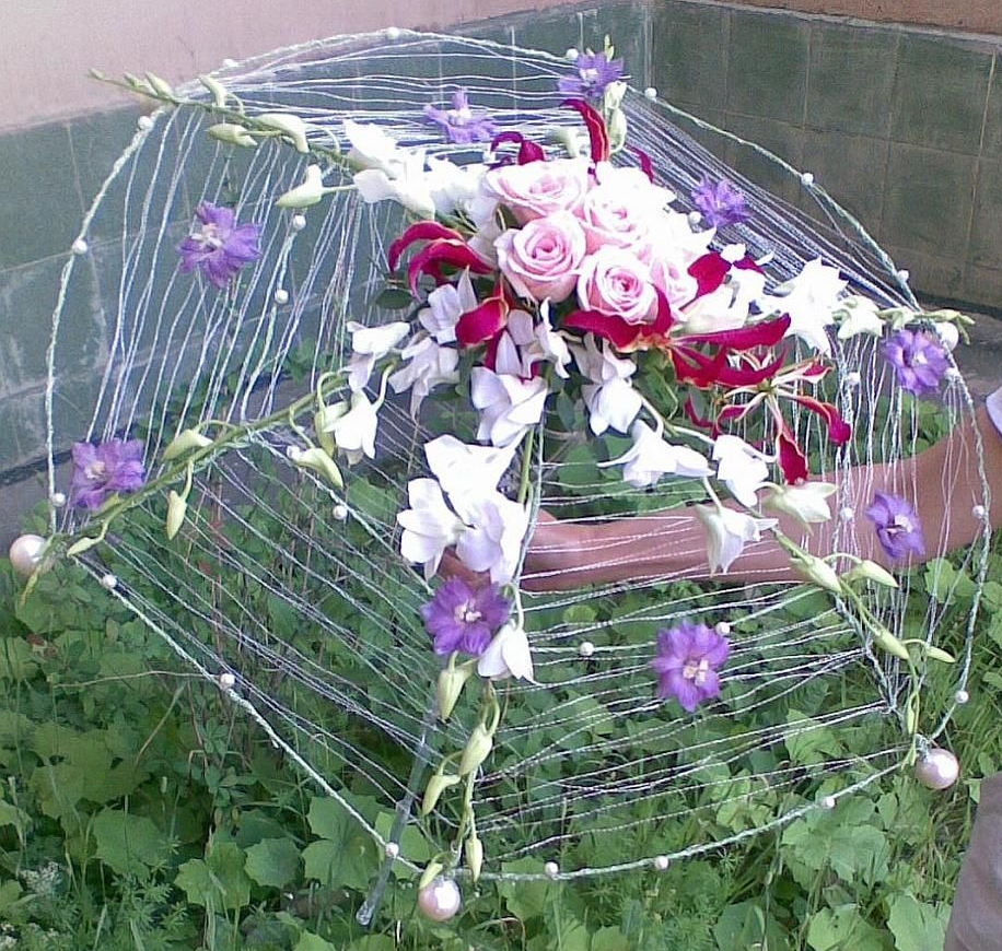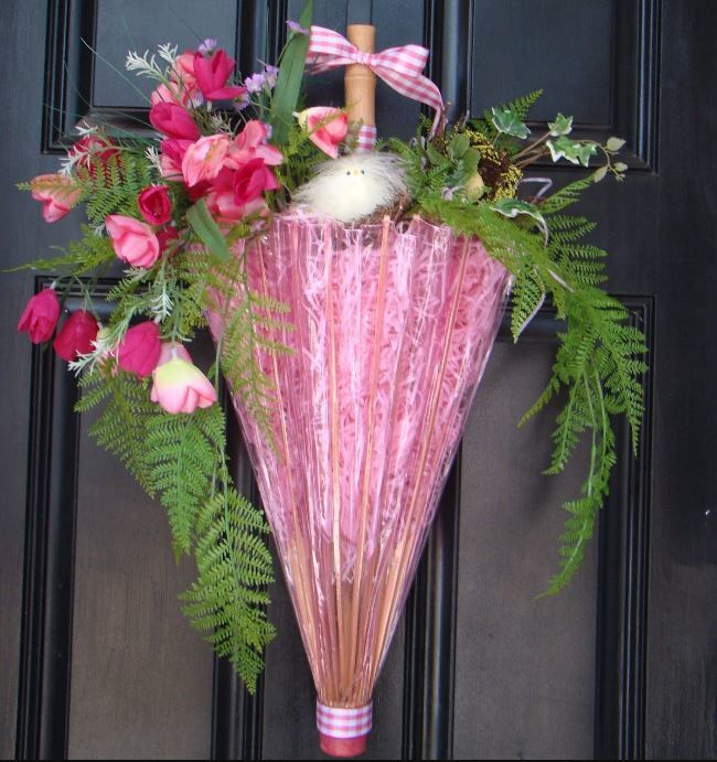 Célébrer un anniversaire ou organiser une cérémonie de mariage est souvent organisé dans la grande cour d'une maison de campagne. Pour de telles célébrations, vous pouvez préparer un décor éphémère mais très esthétique à partir d'un vieux parapluie et de fleurs fraîches.