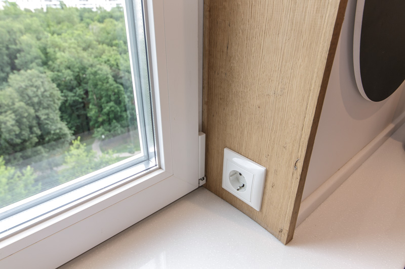 Maintenant, de nombreux concepteurs utilisent une technique peu connue. Ils conçoivent des prises électriques sur les pentes des fenêtres. Dans l'appartement, vous pouvez toujours trouver un grand nombre de gadgets et de chargeurs différents. Ils sont assez peu pratiques à utiliser lorsque la sortie est réglée très bas. Les débouchés à hauteur standard sont progressivement supplantés par une telle solution, notamment pour les petits appartements.