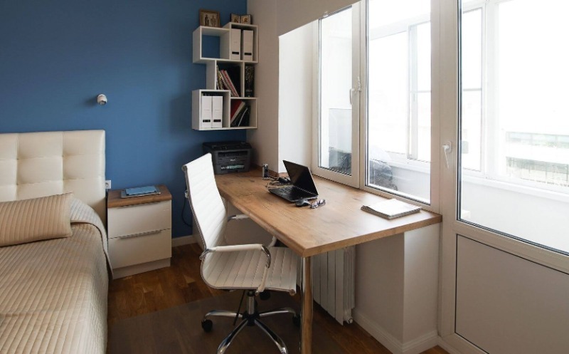 Dans une petite pièce, chaque centimètre libre est important. Pourquoi ne pas utiliser un rebord de fenêtre comme plan de travail. Pour ce faire, vous devez remplacer le rebord de la fenêtre par un élément plus spacieux en bois naturel. Dans la cuisine, il est préférable d'utiliser des carreaux de porcelaine. La surface du plan de travail doit dépasser d'une telle longueur qu'il est confortable de s'asseoir. Du point de vue de la commodité et de la praticité, c'est une option idéale, car de la fenêtre le comptoir sera éclairé par la lumière naturelle. Et du soleil brillant protéger les stores ou les volets roulants. Dans les piles sur les bords, vous pouvez installer des étagères avec des étagères ouvertes pour le bureau, du matériel de bureau ou des ustensiles.