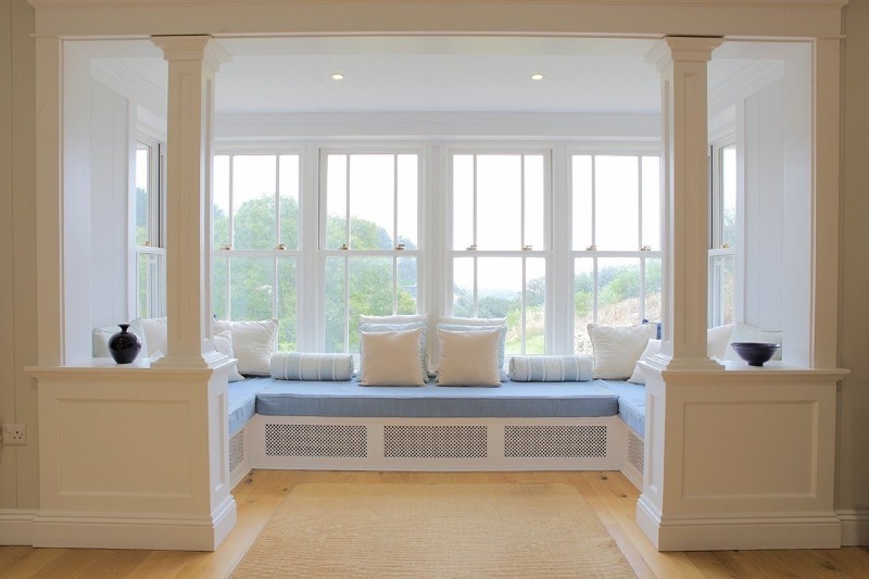 Un large rebord de fenêtre peut être utilisé comme espace de détente si vous y posez un matelas spécialement cousu ou si vous le remplacez par des meubles intégrés - un canapé avec un couvercle à charnière, sous lequel vous pouvez aménager un endroit fermé ou ouvert pour stocker des objets et des livres. Un coin salon spacieux peut également être aménagé dans la baie vitrée, surtout si la fenêtre offre une vue magnifique sur le jardin ou le paysage urbain.