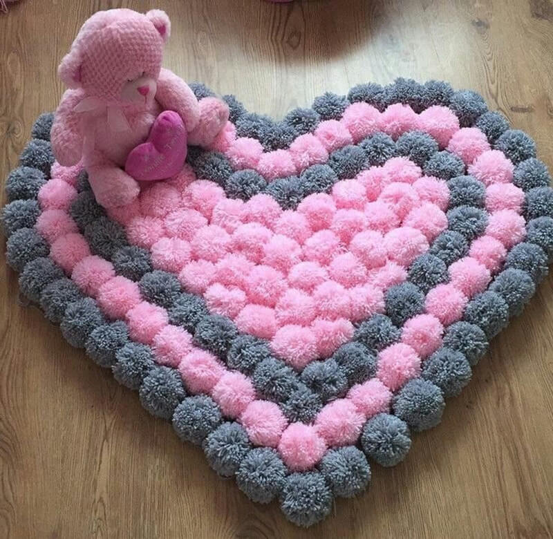 Tapis en pompons et serviettes anciennes en raison de leurs petites propriétés absorbantes, il est préférable de les poser dans les toilettes ou dans les salons. Pour que les pompons ne perdent pas leur aspect, ils sont lavés et peignés de temps en temps avec une grosse brosse.