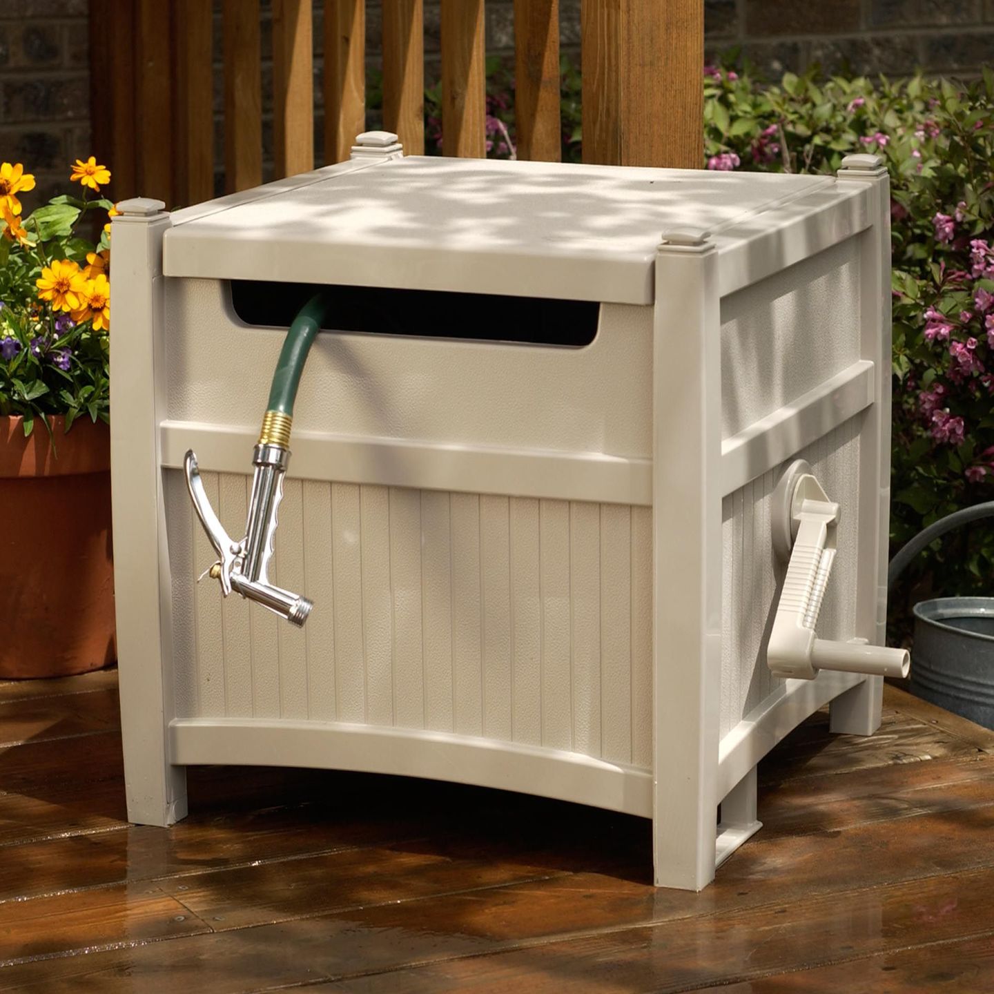Tuyaux soigneusement pliés - ce n'est pas seulement un gain d'espace dans le pays et les nerfs dépensés pour les démêler, mais aussi la possibilité de sécuriser et de décorer votre parcelle de jardin. Les tuyaux d'arrosage peuvent également être rangés avec goût et élégance.