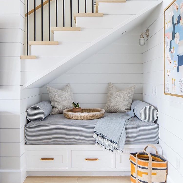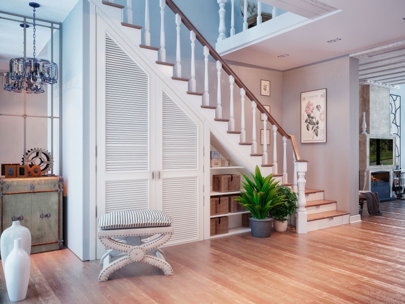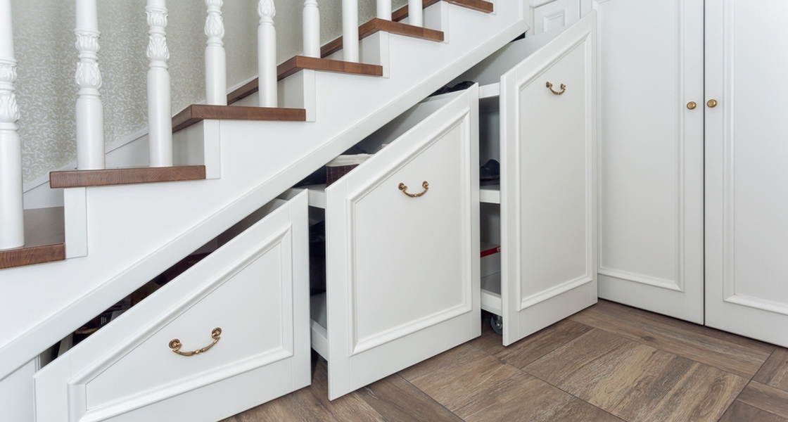 Sous les escaliers, des boîtes ou des étagères pour ranger les choses et les chaussures iront parfaitement.