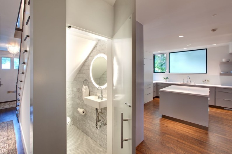 Sous les escaliers s'adaptera un petit garde-manger pour les besoins domestiques ou une petite salle de bain.