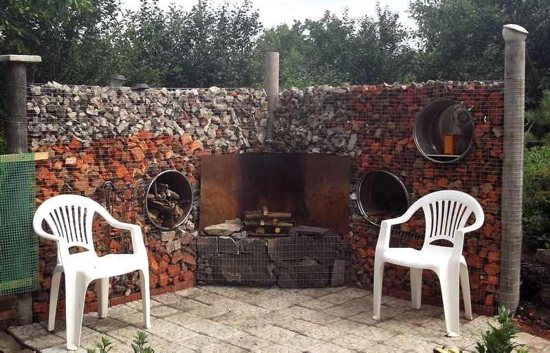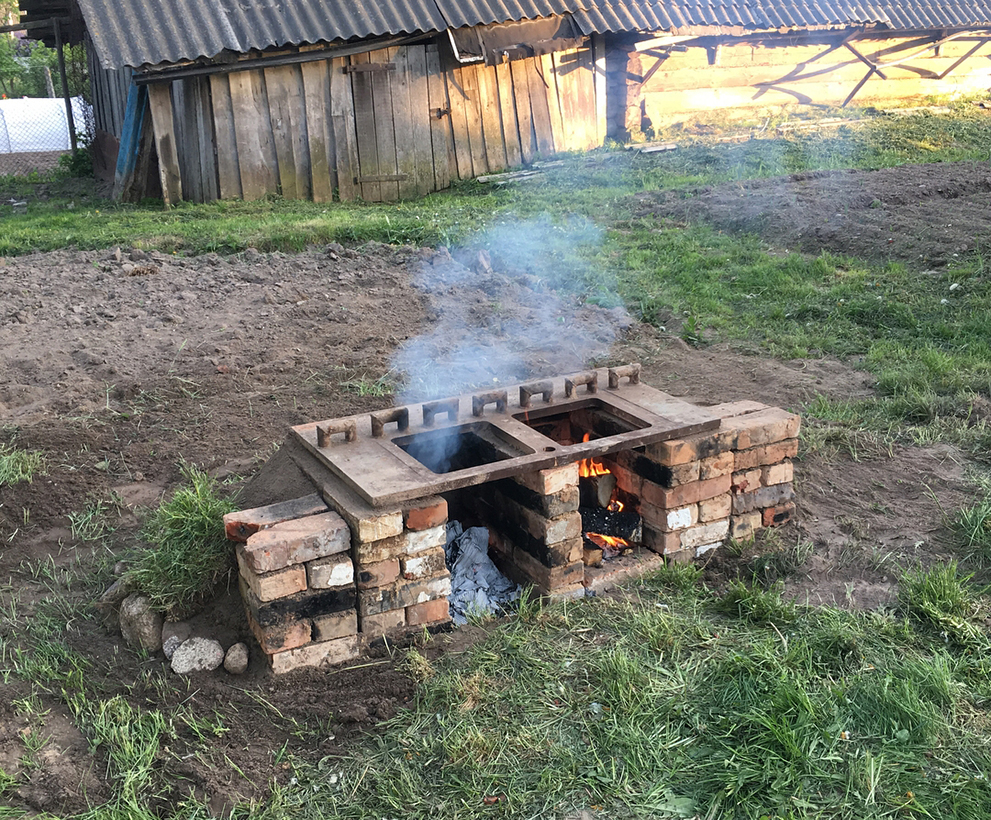 Les poêles d'extérieur sont fabriqués à partir de matériaux utilisés. Pour préparer la nourriture, placez une plaque de cuisson sur le foyer. Lorsque le panneau est retiré, le four est utilisé comme barbecue.