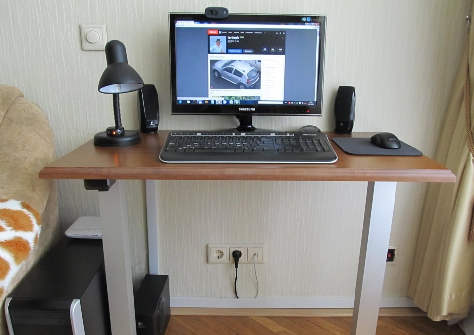 Le bureau a généralement un ordinateur, un moniteur, des périphériques, un téléphone et une lampe de bureau. Pour un fonctionnement confortable, vous aurez besoin d'au moins 6 prises avec une multiprise, et afin de cacher la confusion laide des fils, vous devez installer des accessoires électriques à une hauteur de 25-30 cm au-dessus du sol et retirer les fils sous le canal de câble.
