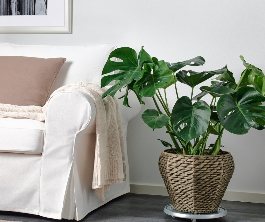 Les grandes plantes dans des pots massifs sont parfaites près des canapés, des fauteuils ou dans le coin de la pièce. Afin de ne pas endommager le stratifié ou le parquet, il est préférable de les placer non pas sur le sol, mais sur une table ou un support. Pour assurer un mouvement confortable des fleurs autour de l'appartement, il convient de privilégier les appareils sur petites roues.