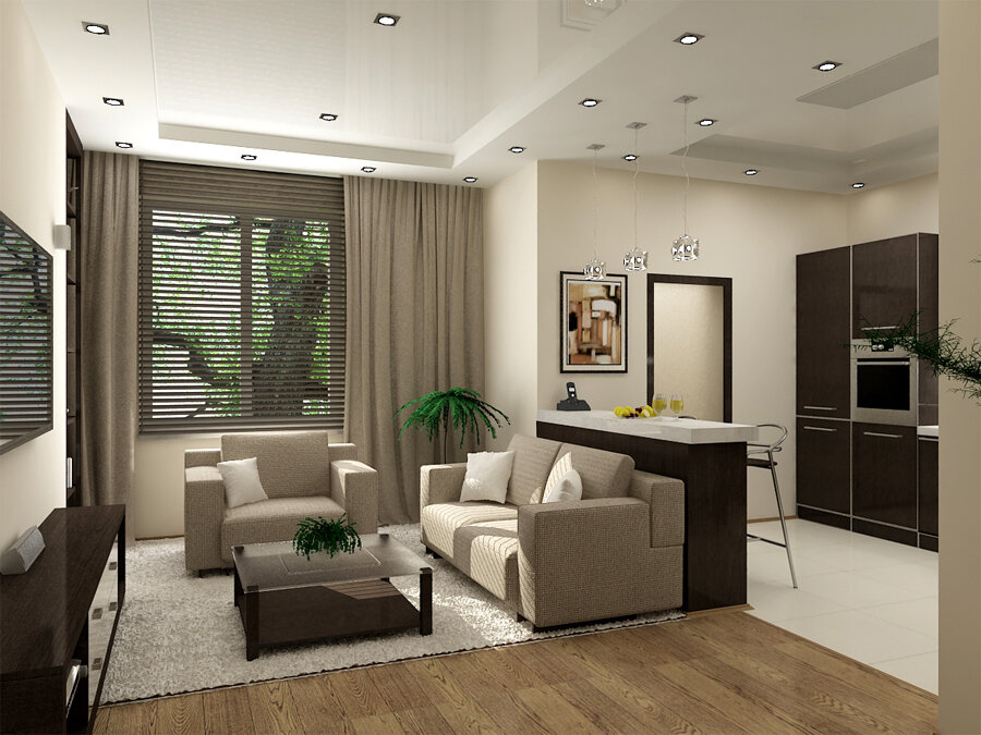 Comment organiser les meubles dans un appartement d'une pièce: idées sur la photo