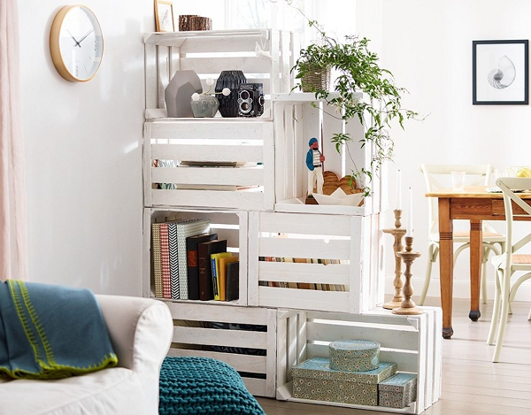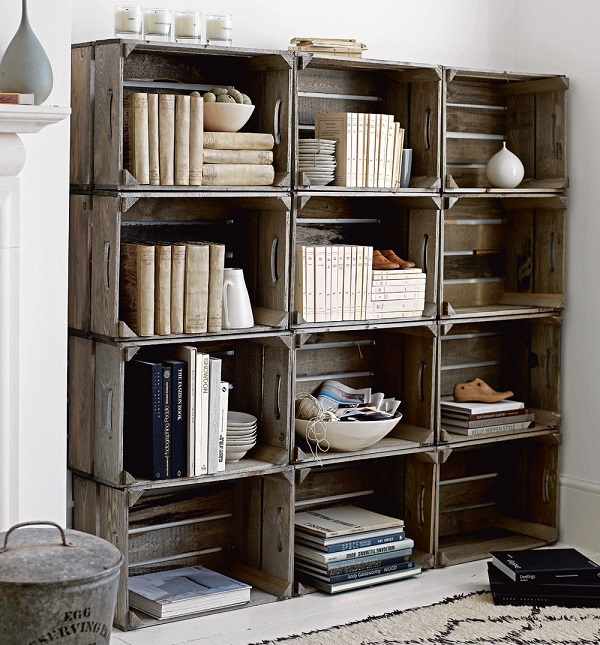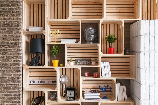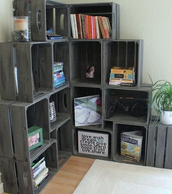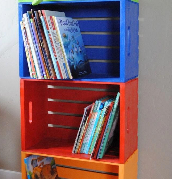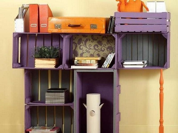 Un autre meuble populaire est une bibliothèque, qui peut être rapidement assemblée et conçue efficacement. Sa forme, sa taille et sa couleur ne dépendent que de l'imagination de l'auteur.