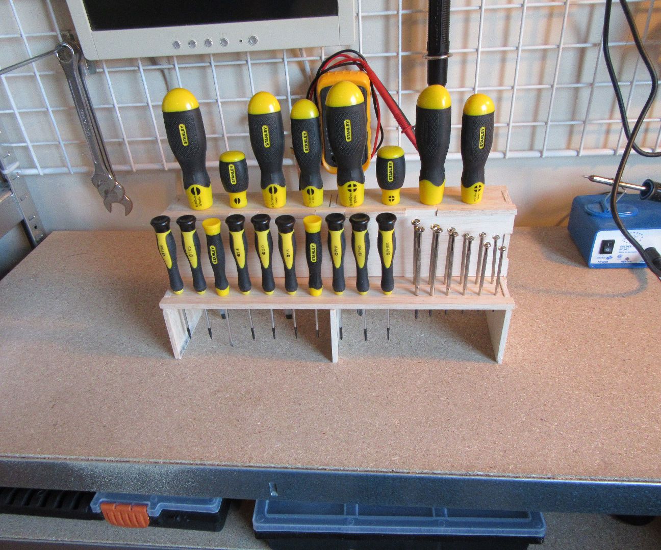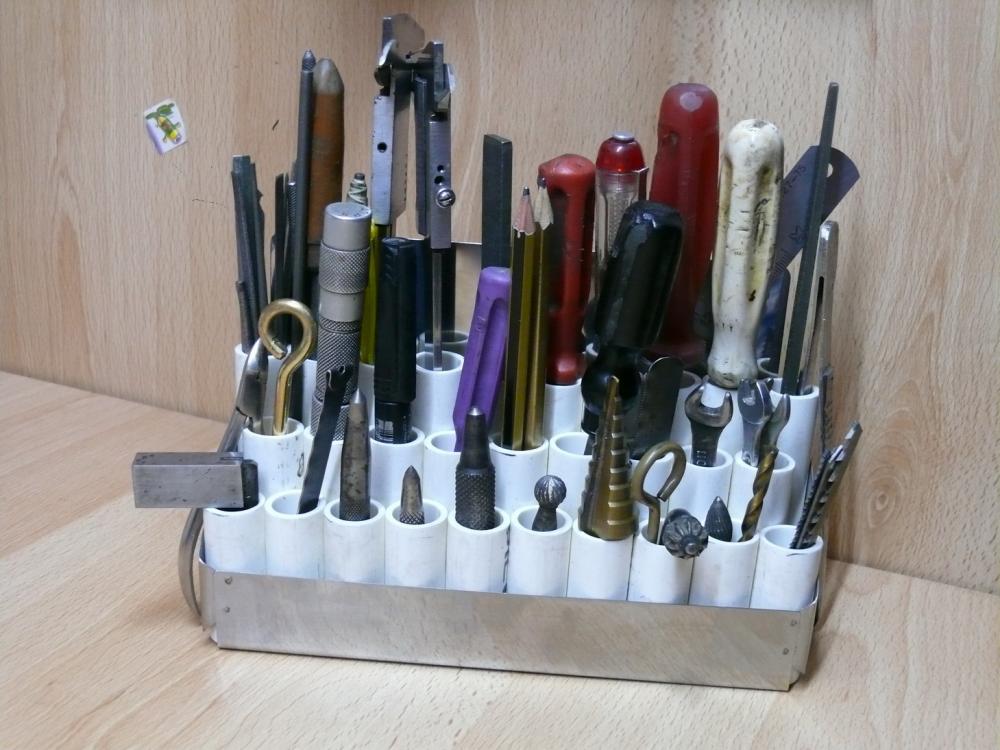 Si vous faites un support pratique avec des trous de différents diamètres, alors chaque tournevis occupera une place appropriée uniquement pour lui.