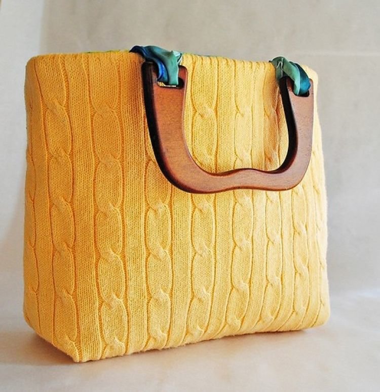 Un sac fait de vieux tricots sous la forme d'un sac informe est très pratique et spacieux, mais un cadre solide donnera aux produits la bonne forme.