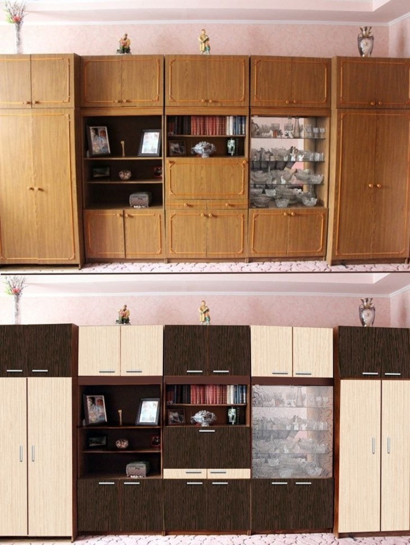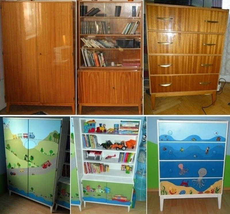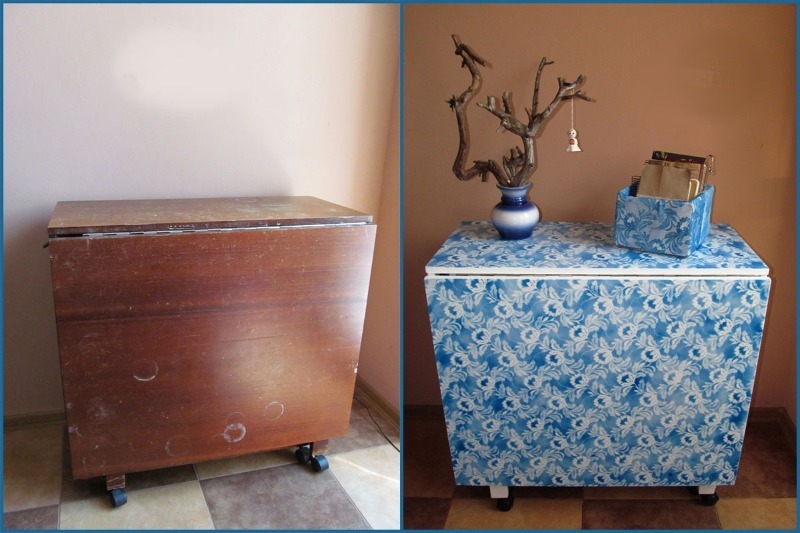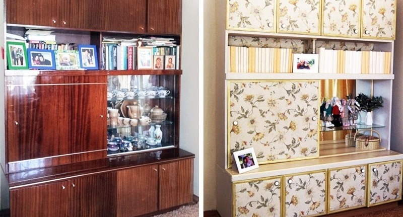 Dans les magasins de construction modernes, vous pouvez acheter des papiers peints autocollants qui peuvent facilement transformer de vieux meubles en nouveaux. En raison du large assortiment et de la variété des solutions de couleurs, les meubles restaurés peuvent devenir vraiment uniques. Après tout, une telle coloration et une telle combinaison de tons ne peuvent être trouvées nulle part ailleurs.