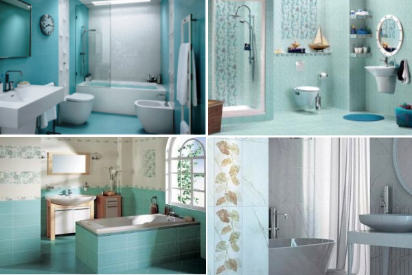 Vous pouvez créer des compositions de décoration originales en utilisant une variété de combinaisons de carreaux à l'infini. Cependant, il faut garder l'imagination si elle est censée effectuer indépendamment le parement - il sera très difficile de disposer vous-même un dessin complexe. Pour les débutants, il est préférable de préférer une tuile avec de grandes tailles d'éléments et un moyen facile de disposer. Après avoir été formé au processus de revêtement de la salle de bain, il sera possible d'effectuer des travaux plus complexes.