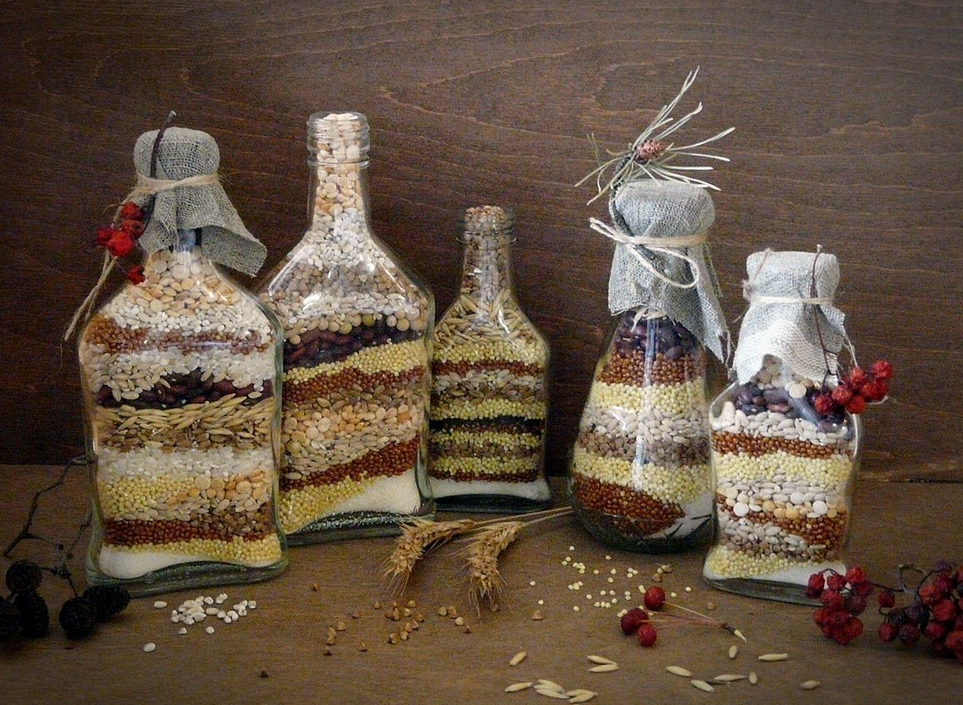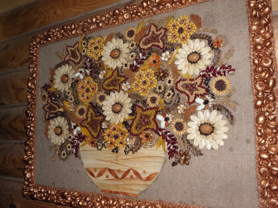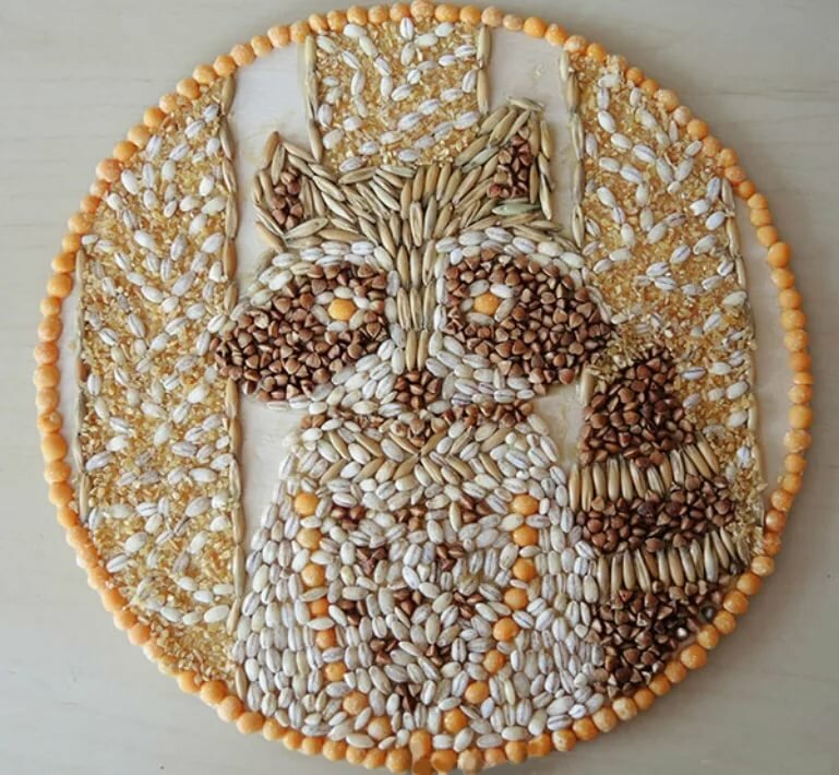 Les images de céréales et de graines multicolores sont spectaculaires. Un tel travail nécessite du talent artistique et beaucoup de diligence, mais le résultat fera forte impression.