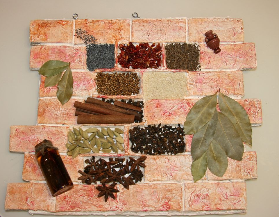 Des panneaux spectaculaires décoreront n'importe quelle pièce, mais ils conviennent surtout à l'intérieur de la cuisine. Une "image" est formée sur une base solide (une feuille de papier épais, de carton ou de toile) selon votre croquis ou votre gabarit prêt à l'emploi. Les matières premières sont soigneusement lavées, séchées au four et collées au substrat.