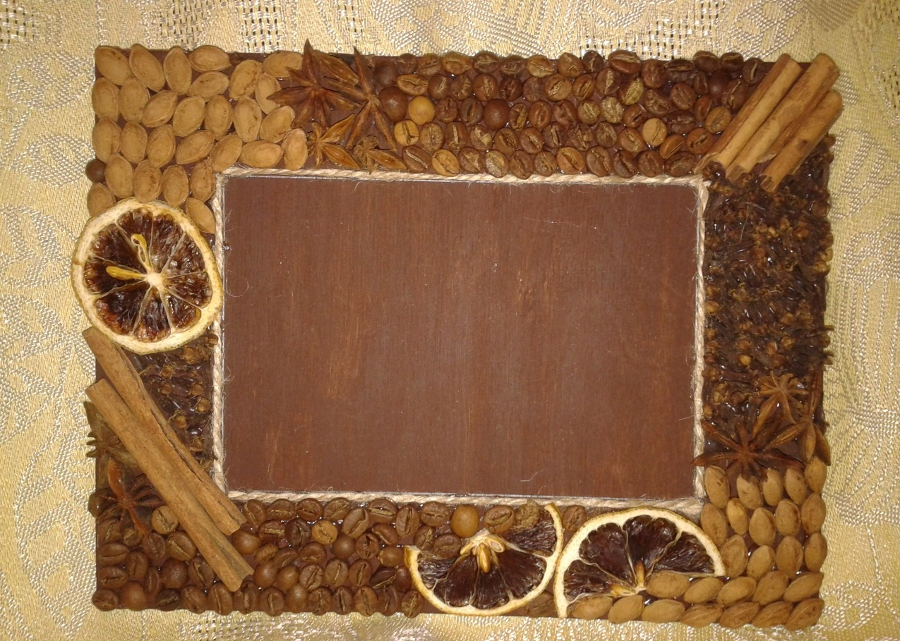 Les cadres pour peintures et photographies sont efficacement décorés avec des produits en vrac. Vous pouvez enregistrer la couleur et la texture des matériaux naturels. Mais si le produit est peint, cela le rendra non seulement plus élégant, mais aussi plus durable.