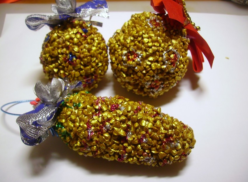Les produits alimentaires secs seront un support fiable pour les bougies dans les sous-verres faits maison. De plus, le chandelier deviendra plus coloré et pourra décorer efficacement la fête.