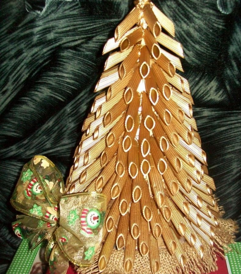 La matière légère et en plastique peut être utilisée pour renouveler les décorations d'arbre de Noël fanées. Ce travail simple plaira vraiment aux enfants. Et un élégant sapin de Noël en spaghetti surprendra vos invités.