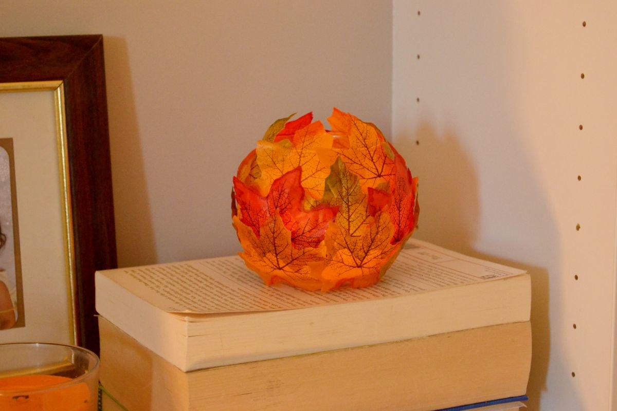 En quelques minutes, vous pouvez construire une lampe inhabituelle en fixant les feuilles sur la surface du vase avec de la ficelle.