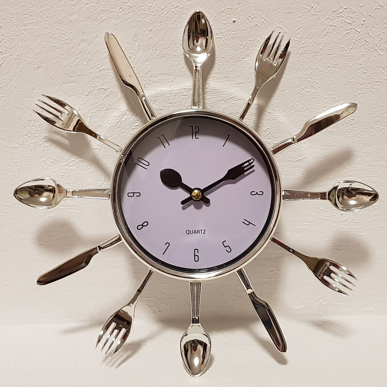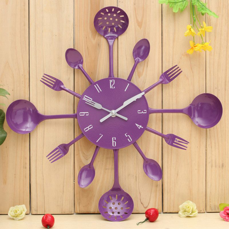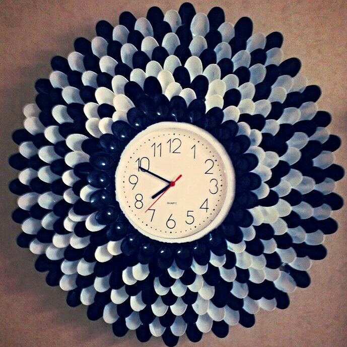 Les cuillères et les fourchettes jetables transformeront une horloge de cuisine en un «soleil» original qui sera particulièrement beau sur un mur uni.