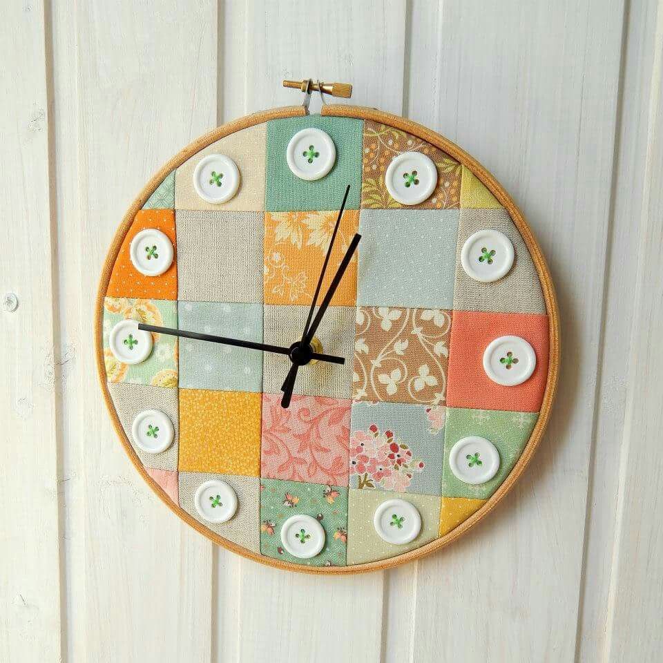 Il ne sera pas difficile pour les couturières de faire une base pour des montres à partir d'un tissu tendu sur le cercle de broderie, complétez-le avec des appliques, des boutons colorés ou des patchs colorés.