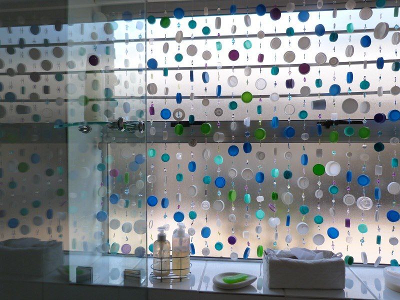 Matériel disponible pour l'artisanat à la maison - bouchons de boîtes pour aliments pour bébés. Un rideau durable et opaque peut être utilisé pour isoler un endroit pour dormir dans une petite zone.