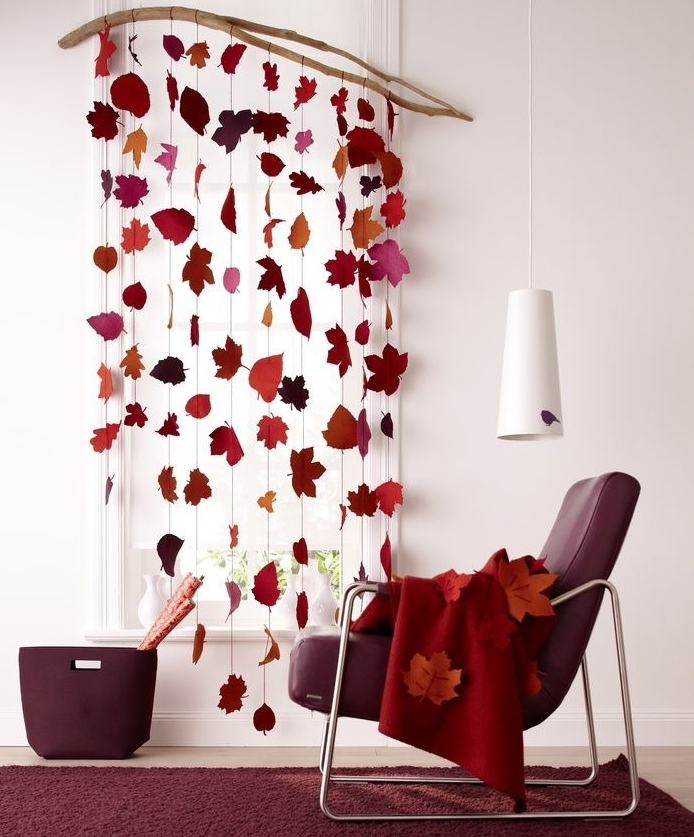 Un rideau «aéré» et très élégant se transformera en fleurs en papier ou en feuilles d'automne attachées ensemble.