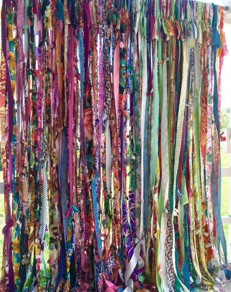 Les vieux rideaux, coupés en rayures pittoresques, sont une excellente alternative aux modèles achetés. Pour que le matériau ne s'effrite pas, il est préférable d'utiliser des tissus en fibres synthétiques.