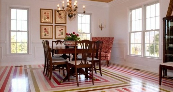 Un plancher en chintz est parfois appelé «parquet en chintz» et ce n'est pas un hasard: malgré la faible aération du chintz, en combinaison avec du vernis, il forme un revêtement plutôt solide et durable. Bien sûr, il n'est pas conseillé de l'organiser dans la salle de bain, mais dans le salon, la chambre ou même la cuisine, le parquet en chintz deviendra une alternative originale au linoléum ou au stratifié ordinaire.