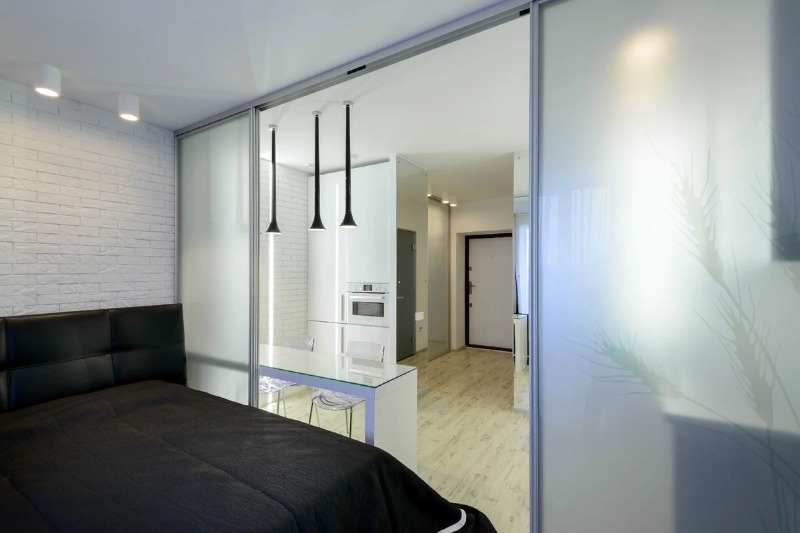 Les portes coulissantes en verre sont une bonne option pour transformer une pièce en deux pièces séparées. Elles n'encombreront pas l'intérieur et ne délimiteront pas le lieu de travail ou l'espace de détente Les portes coulissantes en verre comme cloisons présentent plusieurs avantages: