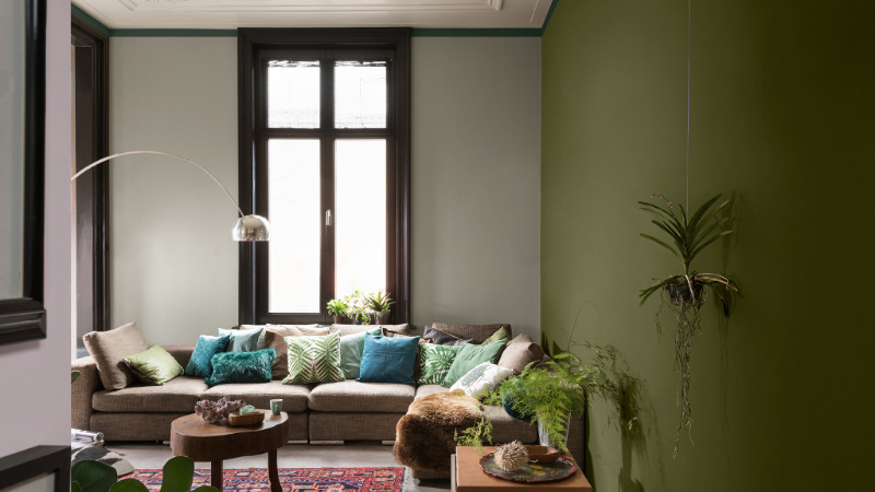 Cette teinte a un effet positif sur une personne, aide à se concentrer, donne de la relaxation. Lorsqu'il est combiné avec des meubles et une décoration, il peut servir de bonne toile de fond. La couleur verte naturelle se combine harmonieusement avec une teinte crème, créant un intérieur calme. Les principaux compagnons du vert sont le jaune, le beige, le marron et l'orange. La combinaison de vert naturel avec des meubles et une décoration en bois donne un aspect respectable à la pièce.