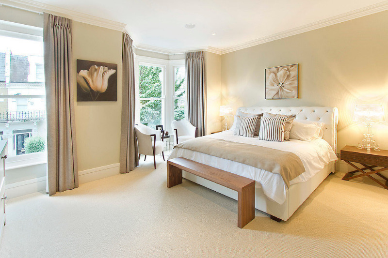 L'une des couleurs universelles utilisées pour l'arrière-plan. La couleur crème est claire et délicate: vous pouvez faire toute la pièce hors de ses tons ou prendre l'arrière-plan pour des couleurs plus saturées. Lors de la création d'un intérieur calme sur un fond crème, le bois de couleur chocolat foncé peut servir de détails contrastés, ce qui rend l'intérieur terne. La crème aime toutes les couleurs pastel. Pour une plus grande saturation, des détails violets sont ajoutés à la salle de crème (textiles, bijoux, meubles, etc.). Dans les versions classiques, il est combiné avec du bleu clair, léger et frais. Pour les intérieurs naturels, la couleur crème se décline dans une palette de pistaches, de gris et de sable.