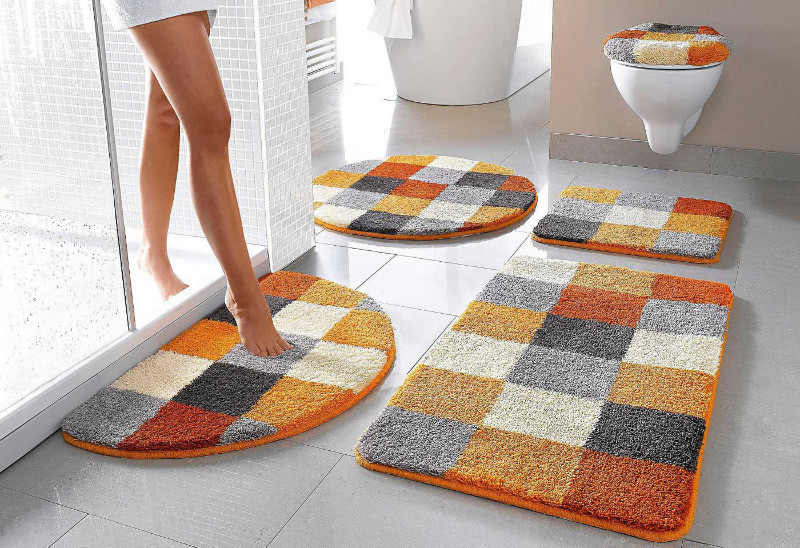 Une option simple avec laquelle vous pouvez mettre à jour l'apparence de la salle de bain est de remplacer le tapis de sol. Le modèle doit être sélectionné en fonction de l'effet visuel souhaité. Cependant, si vous voulez que la mise à jour du tapis soit frappante, choisissez une option qui contraste au moins avec les sols et mieux avec toute la pièce.