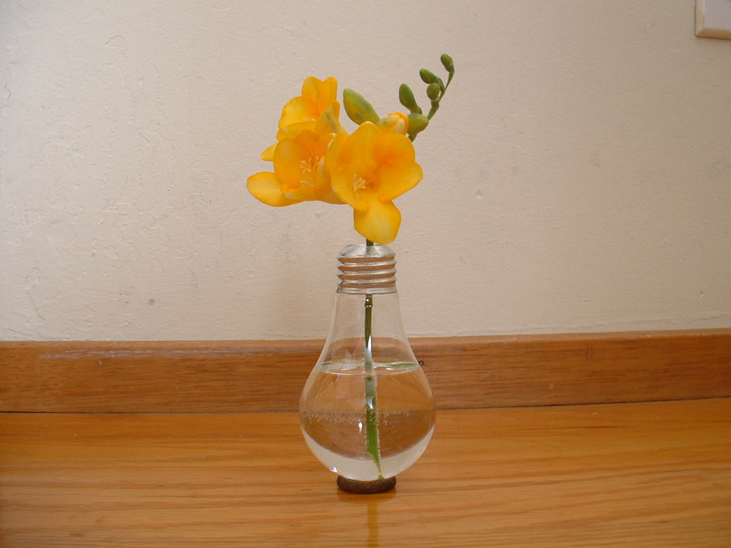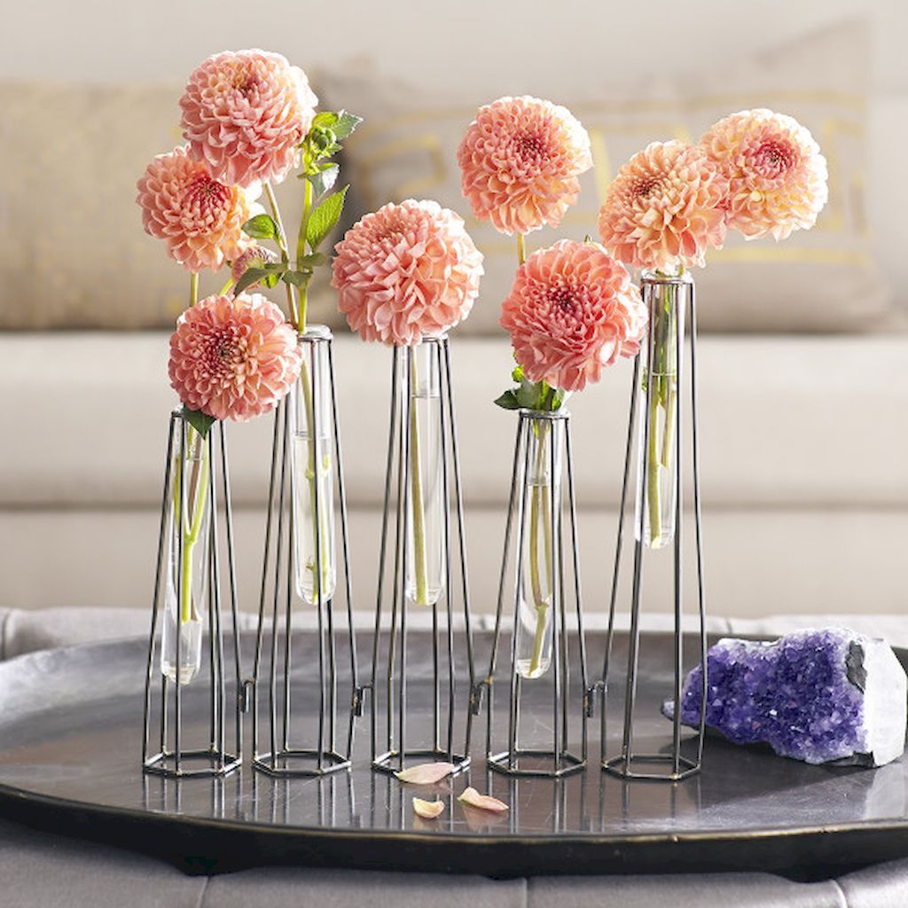 Un arrangement floral spectaculaire, dont la conception laconique plaira aux jeunes des professions créatives, peut être réalisé dans des stands à partir de tubes à essai de laboratoire, de flacons ou d'ampoules grillées.