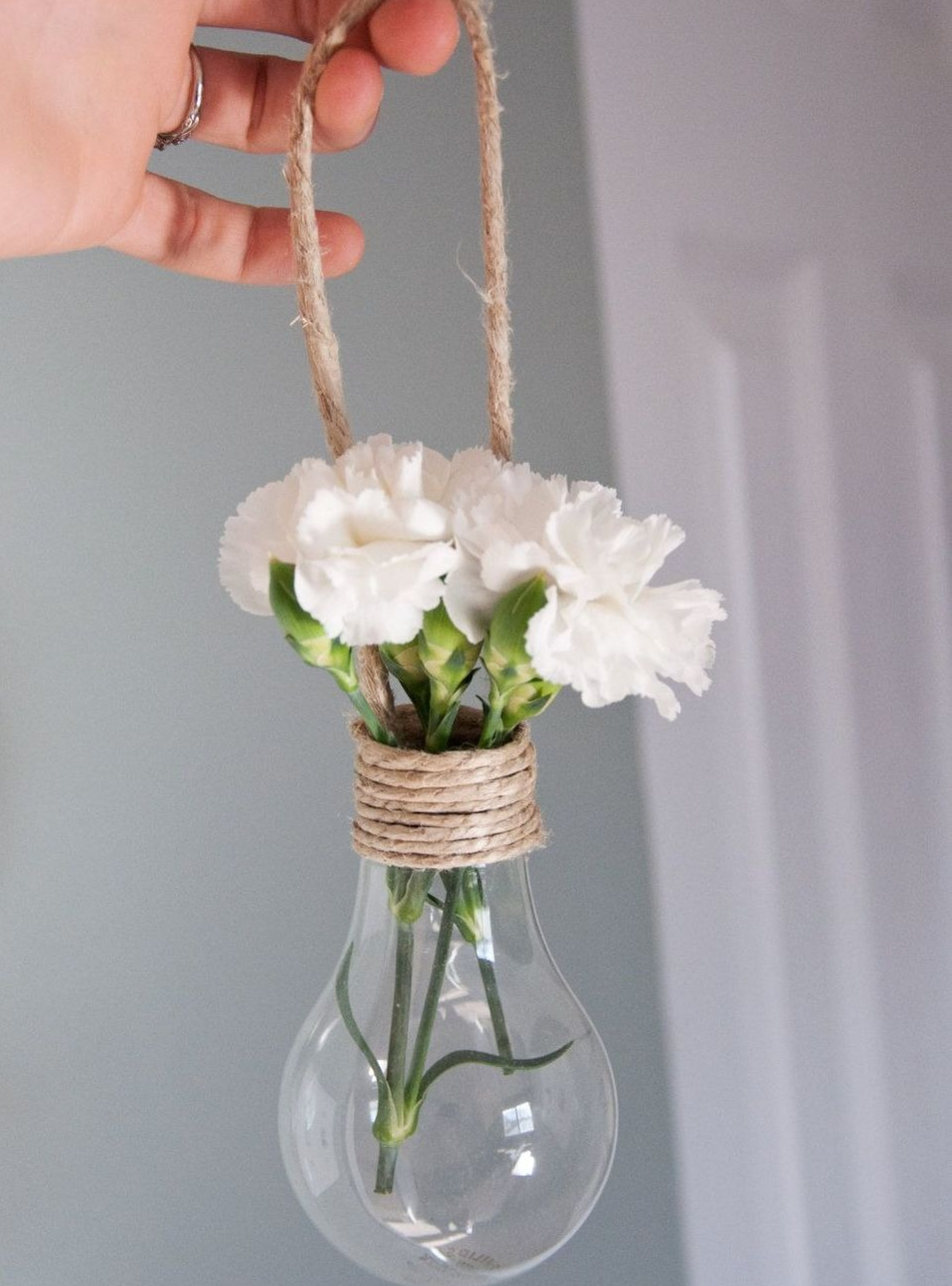 Un petit vase d'une ampoule est monté sur une table ou suspendu.