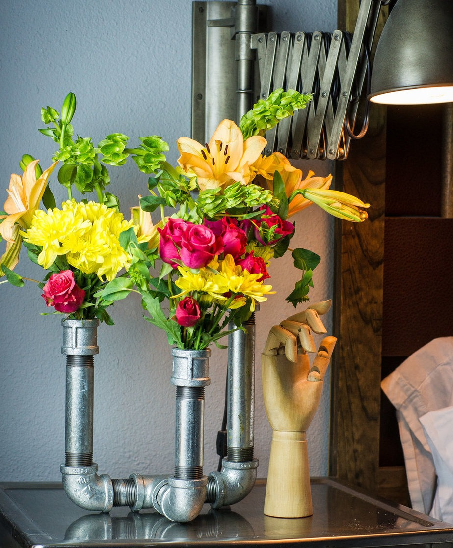 Couper des tuyaux d'eau (en plastique ou en métal) entre des mains habiles deviendra soit un élément de la décoration de la table à manger, soit un produit coloré d'un design avant-gardiste.